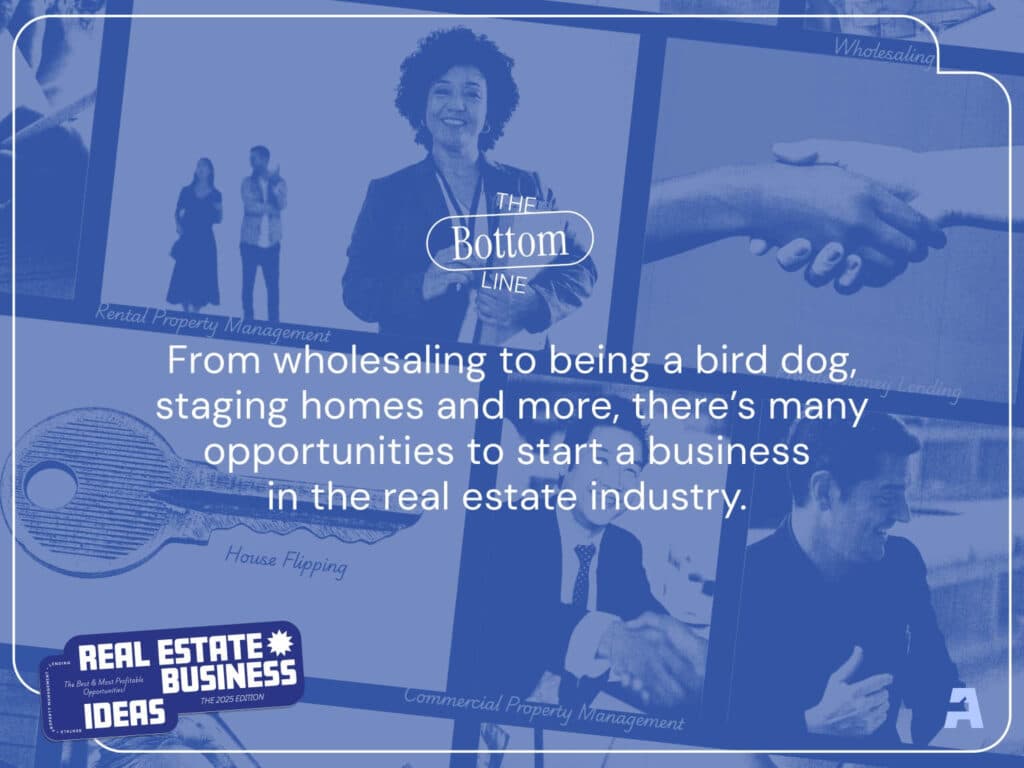 From wholesaling to being a bird dog, staging homes and more, there’s many opportunities to start a business in the real estate industry.